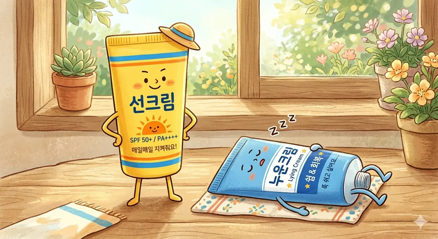 여름에 선크림 눕혀서 보관하지 마십시오.JGP